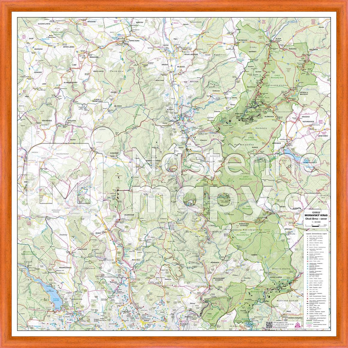 Nástěnná mapa CHKO Moravský kras, okolí Brna-sever – turistická 84 x 84 cm