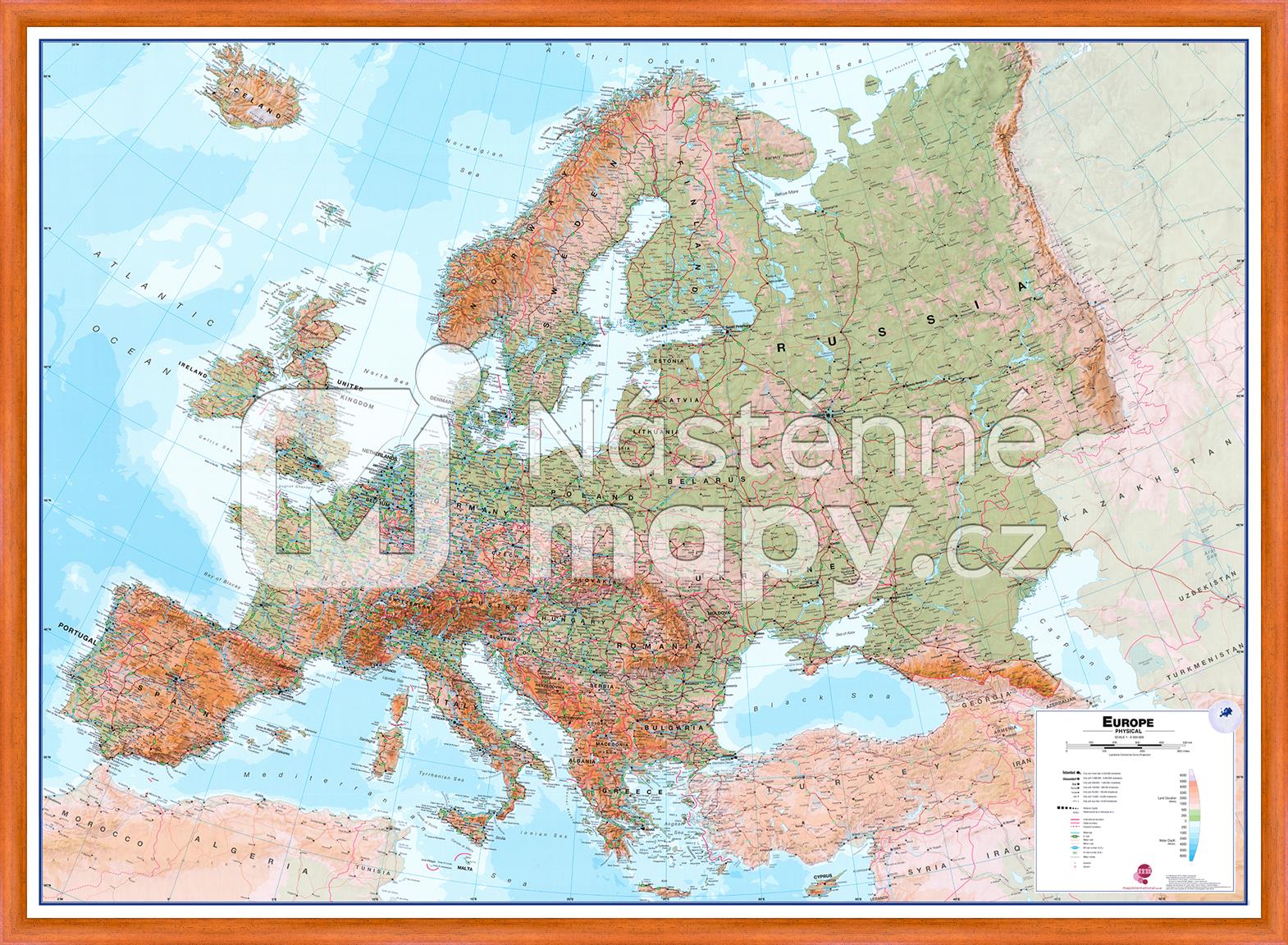 Pořízením mapy v masivním dřevěném rámů získáte luxusní interiérovou dekoraci. Do rámu je mapa zasazena laminovaná a kašírovaná - celoplošně strojově lepená na lehčené, přitom pevné desce. Zvolit můžete rám ze standardní nabídky. V případě požadavku na jinou barevnou variantu Vám rádi vyjdeme vstříc, aktuální nabídka rámů se průběžně mění.