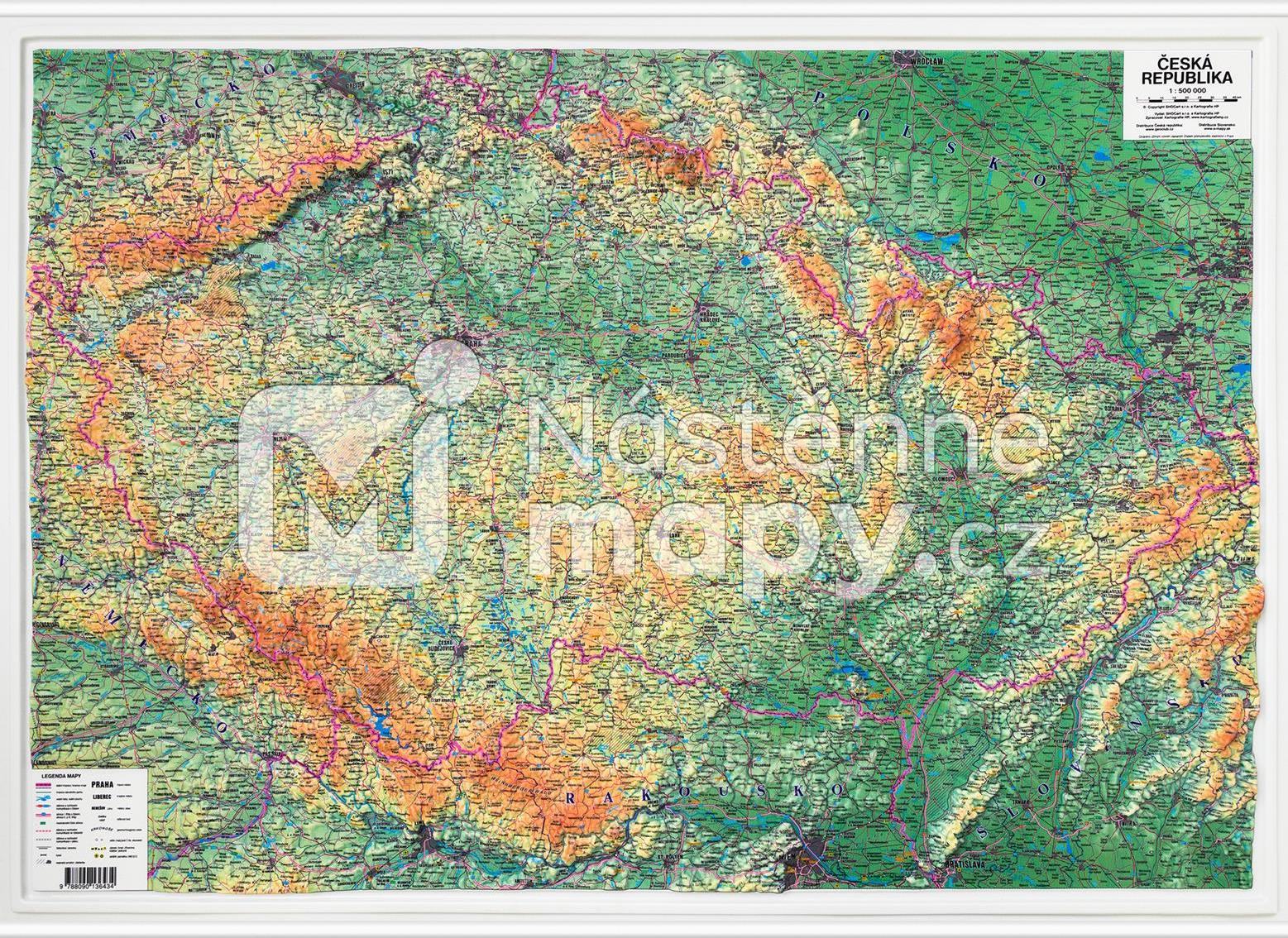 Plastická mapa ČR – 2. jakost 102 x 72 cm