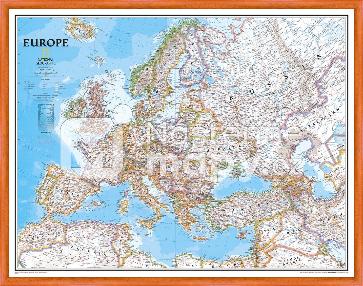 Nástěnná politická mapa Evropy v „modrém“ designu z dílny National Geographic s barevně zvýrazněnými hranicemi jednotlivých států. Díky svému formátu najde uplatnění i v menších interiérech. Mapa je opatřena pevným laminem, které ochrání mapu před poškozením.