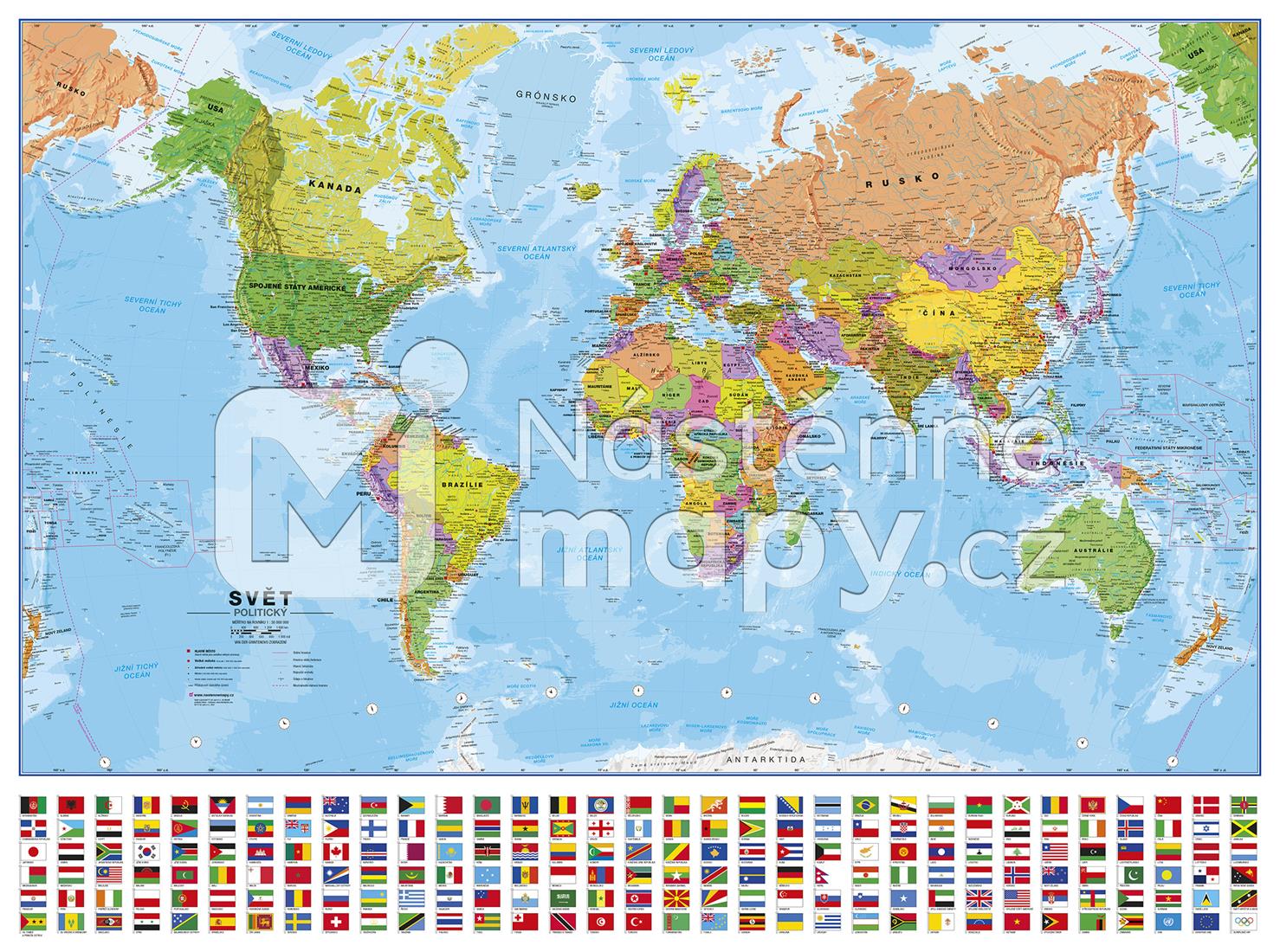 Velmi detailně zpracovaná nástěnná mapa světa s politickým členěním v českém jazyce. Pokud hledáte dominantní prvek pro váš obývací pokoj či kancelář, tato nástěnná mapa světa je skvělou volbou. Mapa je chráněna oboustranným pevným laminem, na které lze psát fixou a následně bez obav setřít. Mapa, která patří mezi naše bestsellery, je velmi podrobná a může sloužit jako výuková pomůcka dětem i studentům.