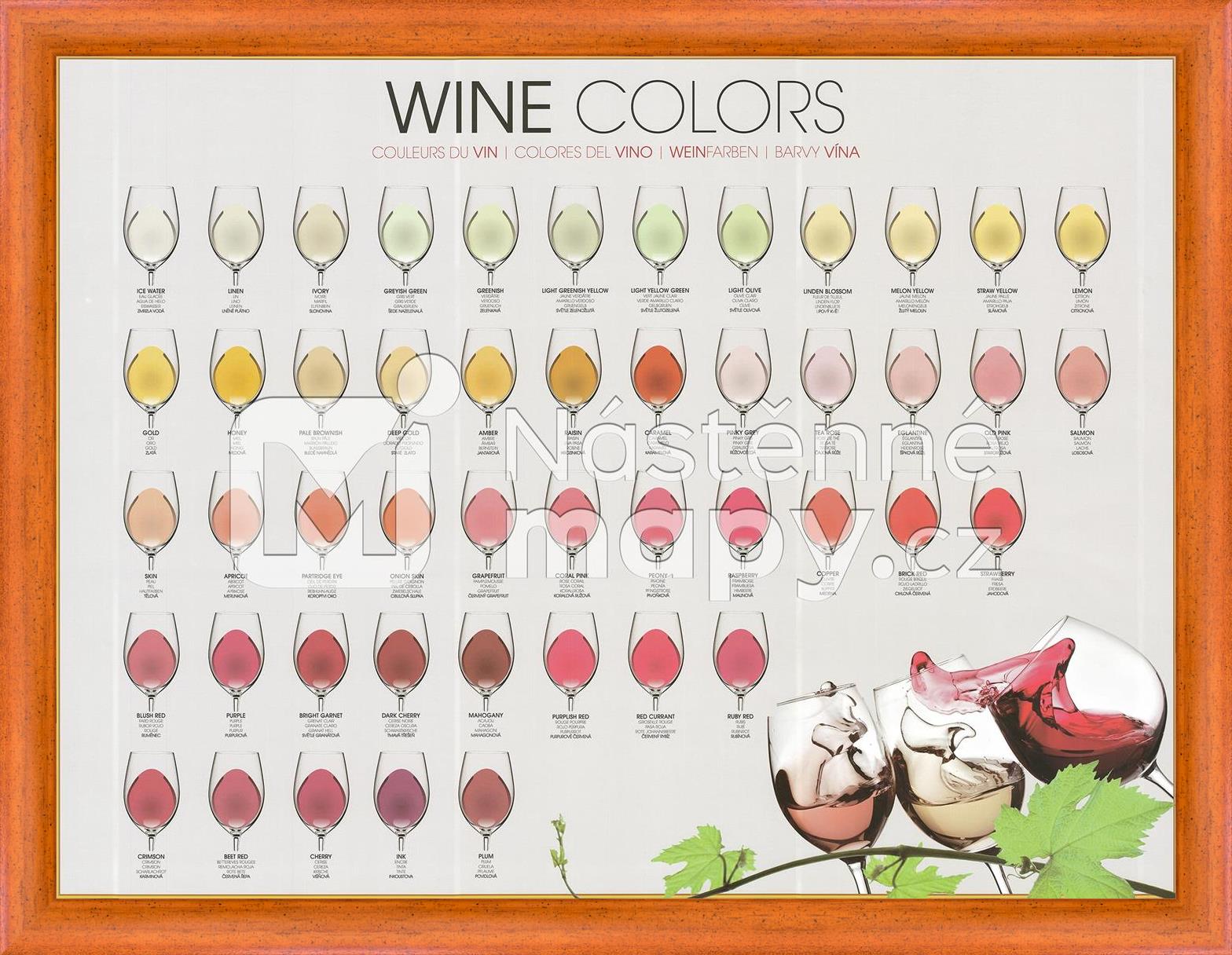Nástěnný obraz s přehledem vyskytujících se barev a odstínů vína ve škále od „zmrzlá voda“ a „lněné plátno“ po „povidlovou“. Popisy jsou uvedeny ve čtyřech jazycích. Obraz je vytištěn na pevném papíře a z obou stran opatřen silným laminem. Lze popisovat stíratelným fixem. Je možné objednat také ve variantě podložky na stůl.
