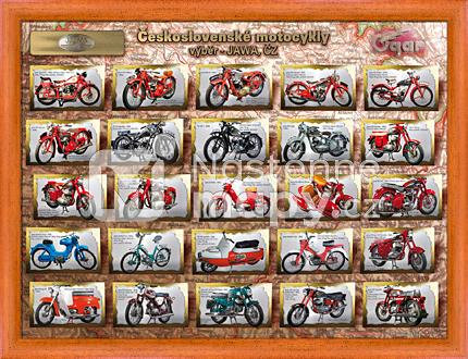 Nástěnný obraz s autentickými fotografiemi nejkrásnějších československých motocyklů.