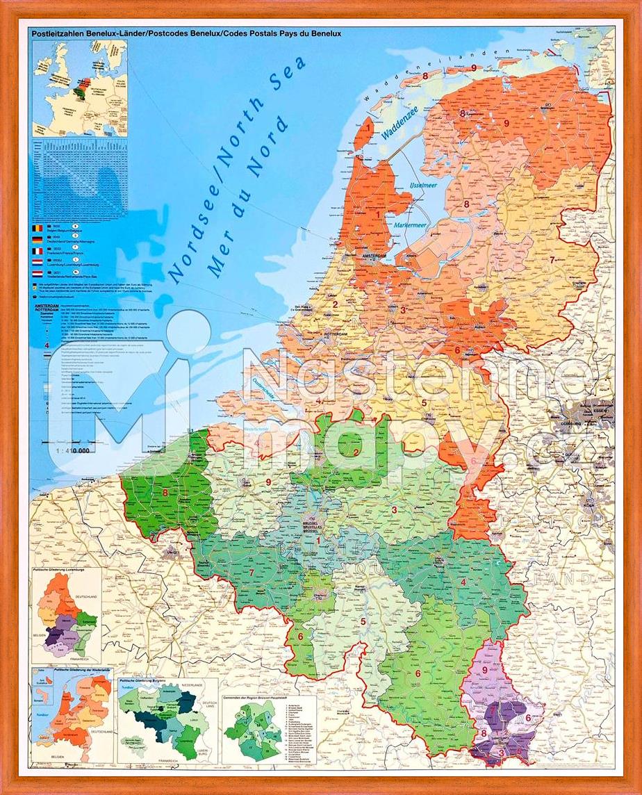 Spediční nástěnná mapa PSČ Beneluxu 97 x 119 cm