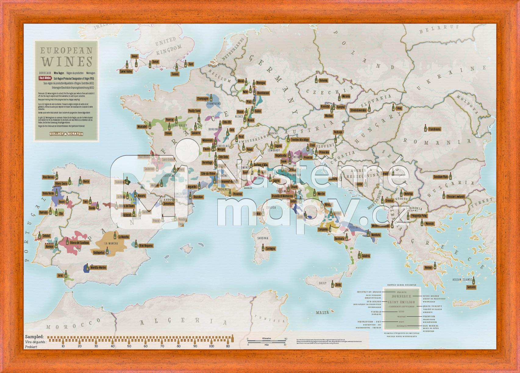 Stírací mapa vinařských oblastí Evropy 60 x 42 cm