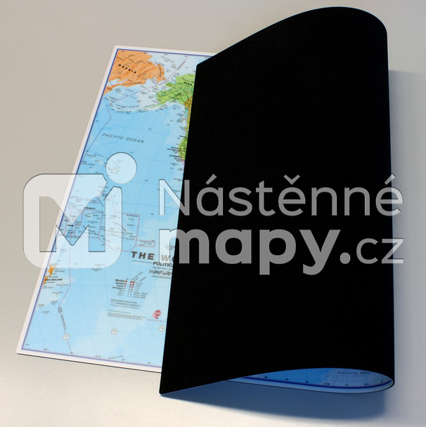 Stolní podložku v příjemně měkkém provedení s motivem politické mapy světa lze použít nejen jako podložku na psaní, ale zároveň také jako podložku pod myš. Její zadní strana je upravena tak, aby po stole neklouzala. Povrch podložky je omyvatelný a odolný proti opotřebení. Lze ji popisovat stíratelným fixem.