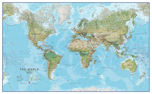 Politická mapa světa vhodná svým rozměrem také do menších prostor.